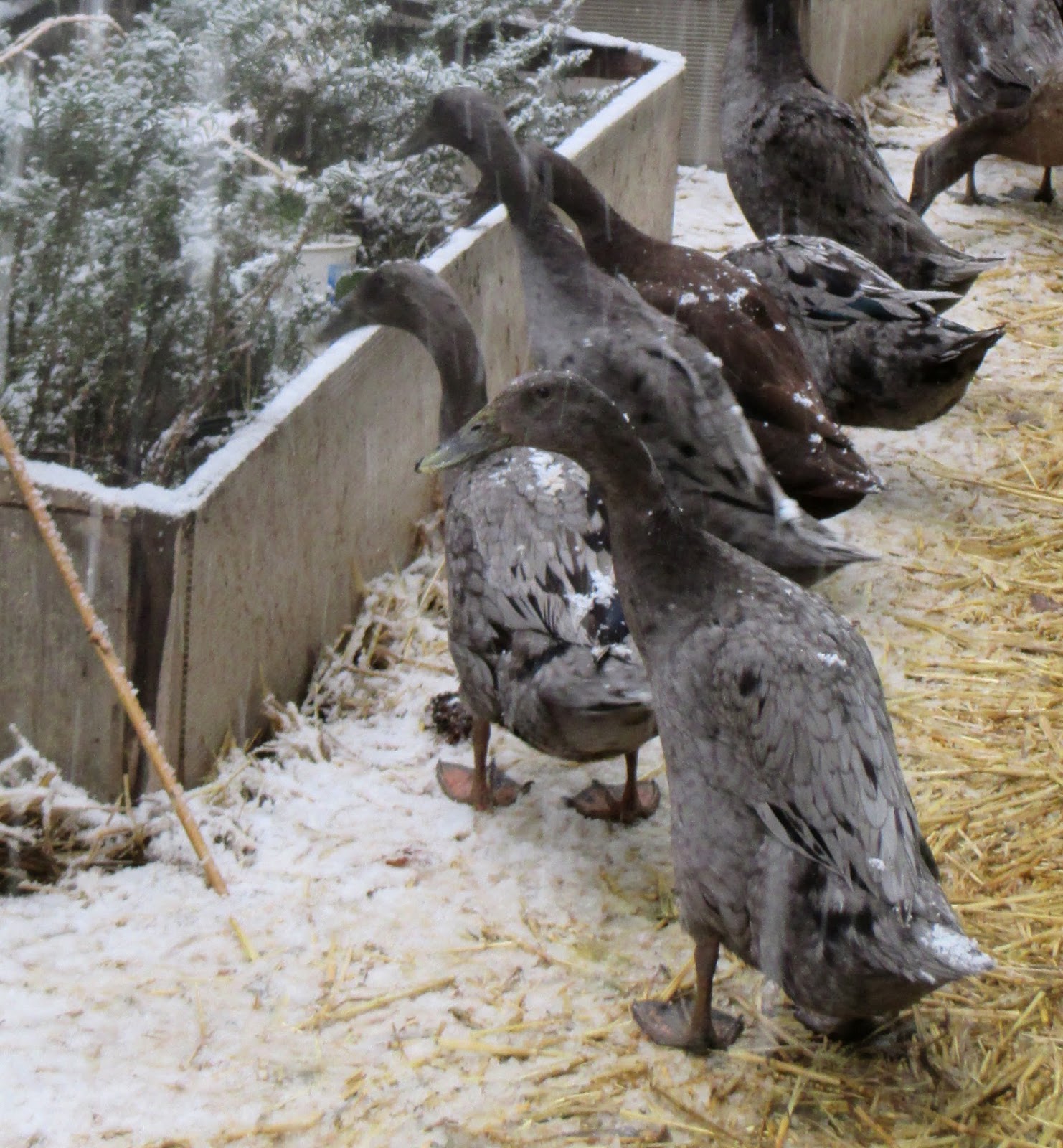 the ducks are unfazed. they love the wet weather and don't seem to mind the cold at all.